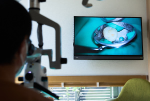 ラバーダムを使用し、マイクロスコープ下で精密に感染源を除去します。
