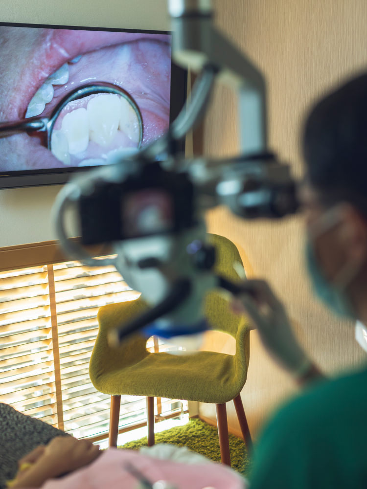 当院では、治療のすべてのステップでマイクロスコープを使用。わずか数ミリの根管内の処置を、肉眼では見えないレベルで丁寧に行います。これにより、根管の清掃・感染源の除去・封鎖処理まで、より確実で再発リスクの低い治療が可能になります。